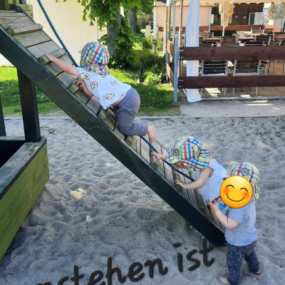 Zu unserer Tagespflege gehört auch ein Garten in dem sich ein Sandkasten befindet zum Burgen und Schlösser bauen. In unserer Spielküche werden tolle Menü's gezaubert. Und eine Rutsche darf natürlich auch nicht fehlen.... Hier Vespern wir auch sehr gern, da schmeckt es gleich noch viel besser!